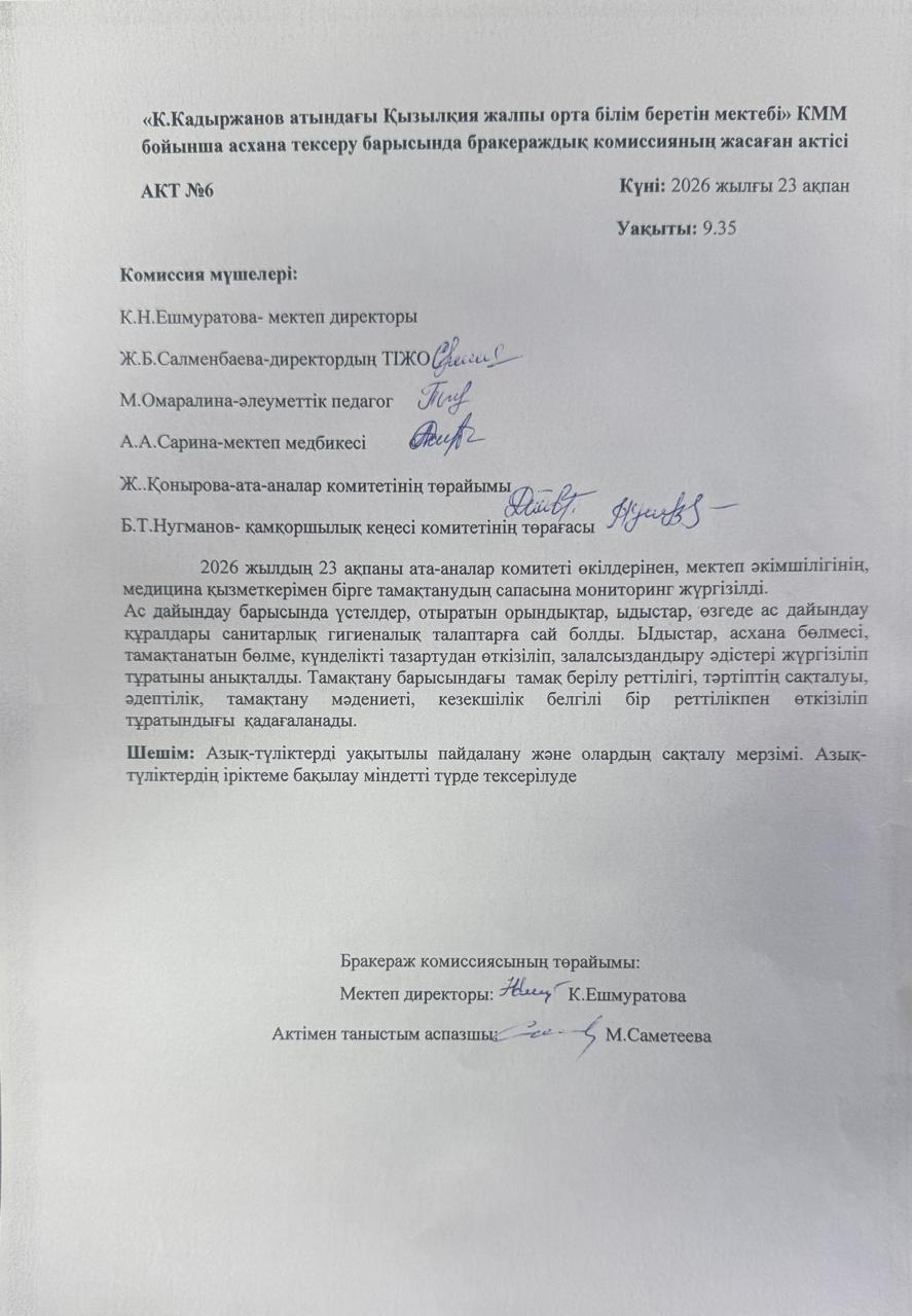 Ыстық тамақ АКТ № 6